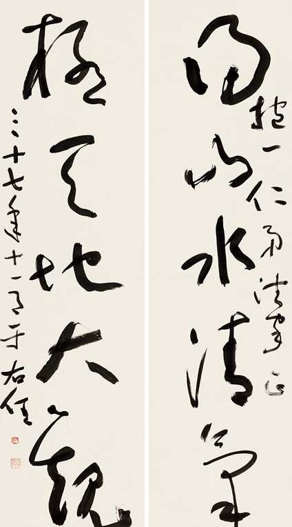《草书五言联》立轴,水墨纸本,成交价格RMB3,220,000。146×39cm×2。
