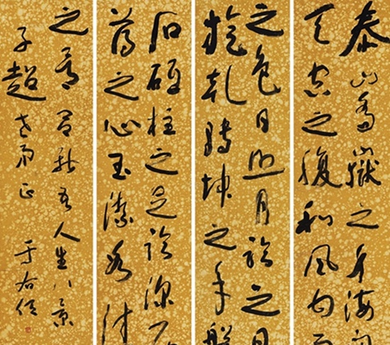 《草书》四屏镜心,水墨纸本,成交价格RMB2,530,000。128.5×33cm×4。
