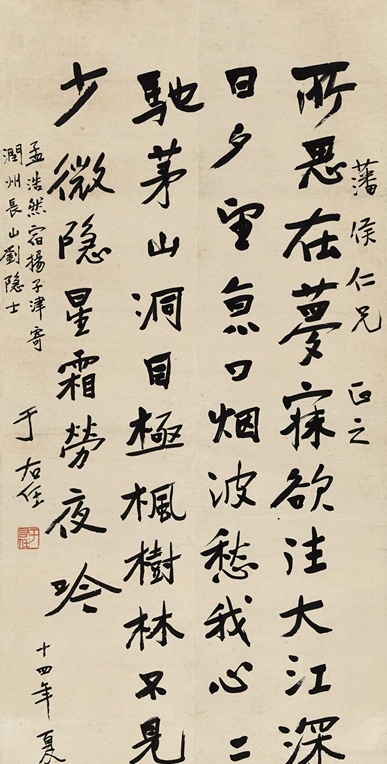 《行书孟浩然诗》立轴,水墨纸本,成交价格RMB2,070,000。131×63.5cm。