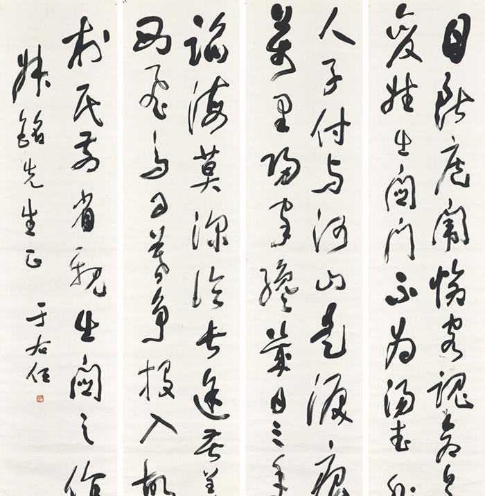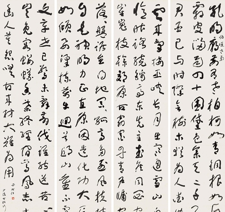 草书《古柏行》四屏立轴,水墨纸本,成交价格RMB1,840,000。181×44.5cm×4。