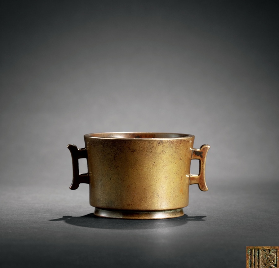 1:明中期筒式戟耳炉,尺寸:口径8.3厘米;高5.8厘米,估价:RMB 1,200,000 ~ 1,800,000,成交价: RMB 4,312,500 ,成交时间: 2021-05-18 ,拍卖公司:中国嘉德国际拍卖有限公司,拍卖专场:中国嘉德2021春季拍卖会。