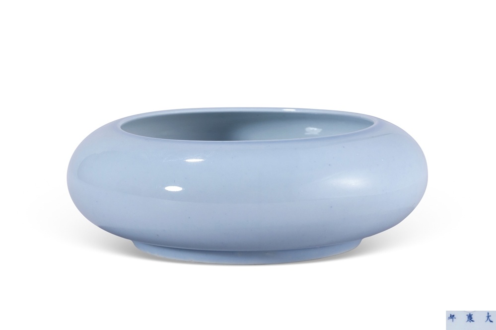 5:清康熙天蓝釉镗锣洗,尺寸:直径11.5厘米,估价:RMB 3,000,000 ~ 5,000,000,成交价: RMB 4,025,000 ,成交时间: 2021-06-07 ,拍卖公司:北京保利国际拍卖有限公司,拍卖专场:北京保利2021春季拍卖会。