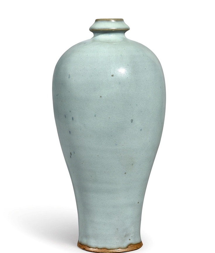 7:宋至金钧窑月白釉梅瓶,尺寸:29.1厘米,估价:HKD 2,000,000 ~ 3,000,000,成交价: HKD 5,935,000 ,成交时间: 2019-04-02 ,拍卖公司:香港蘇富比拍卖有限公司,拍卖专场:2019年春季拍卖会。