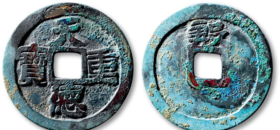 3:五代十国天德重宝背殷 极美品,估价: RMB 120000,成交价格: RMB 212750,拍卖公司:上海泓盛,拍卖专场:上海泓盛2020年春拍-纸钞古钱,成交时间: 2020-07-19 17:30:00。