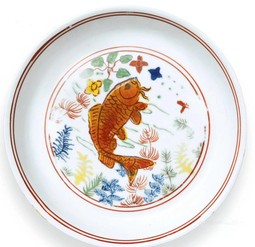 图5:明嘉靖 五彩鱼藻纹盘;成交价:RMB 2,684,800;尺寸:17.2厘米;拍卖公司:香港蘇富比拍卖有限公司;成交时间:2016-04-06。
