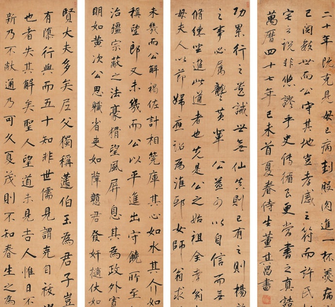 抛开董其昌书法,我们从《东方朔答客难》中,能够感受到董老先生具备的聪慧和机巧。康有为曾评价董其昌的书法让他感觉到“如休粮道士”,这确实是一个很切当的评价,因为“休粮道士”自然是远离尘世、娴静安详的,而董其昌书法就体现了这种不动声色的美。