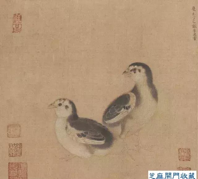 南宋 李迪《禽浴图》纵24.7cmx横24.1cm