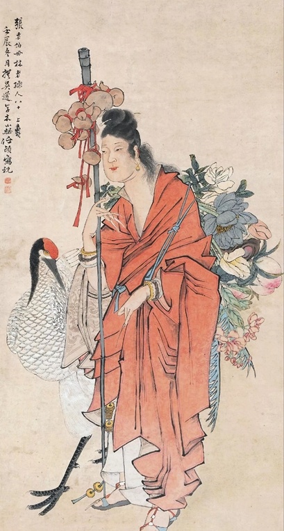 麻姑献寿 立轴 设色纸本, 拍卖成交价格估计:RMB 1,000,000-1,500,000,最终成交价格:RMB 3,450,000, 拍卖专场:北京保利国际拍卖有限公司 2014春季拍卖会, 拍卖成交时间:2014-06-04, 尺寸:125×63cm。
