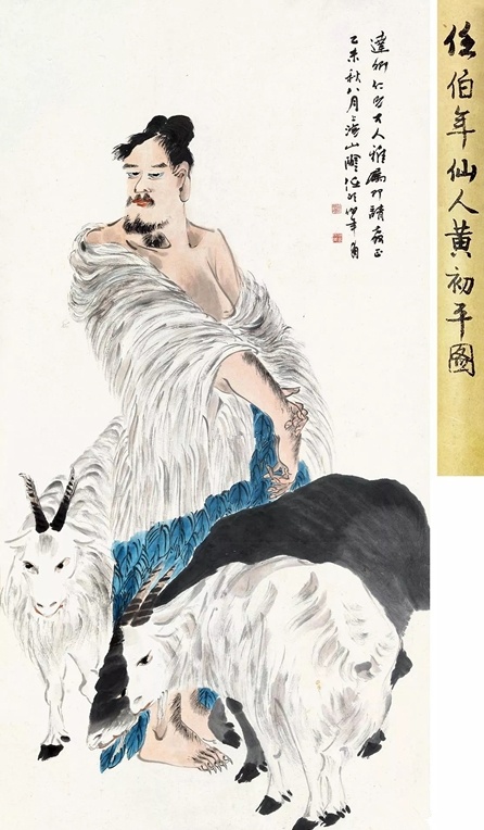 仙人黄初平 立轴 设色纸本, 拍卖成交价格估计:RMB 1,000,000-1,500,000,最终成交价格:RMB 2,875,000, 拍卖专场:上海离原拍卖有限公司 2014年秋季拍卖会, 拍卖成交时间:2014-12-16, 尺寸:134×66cm。