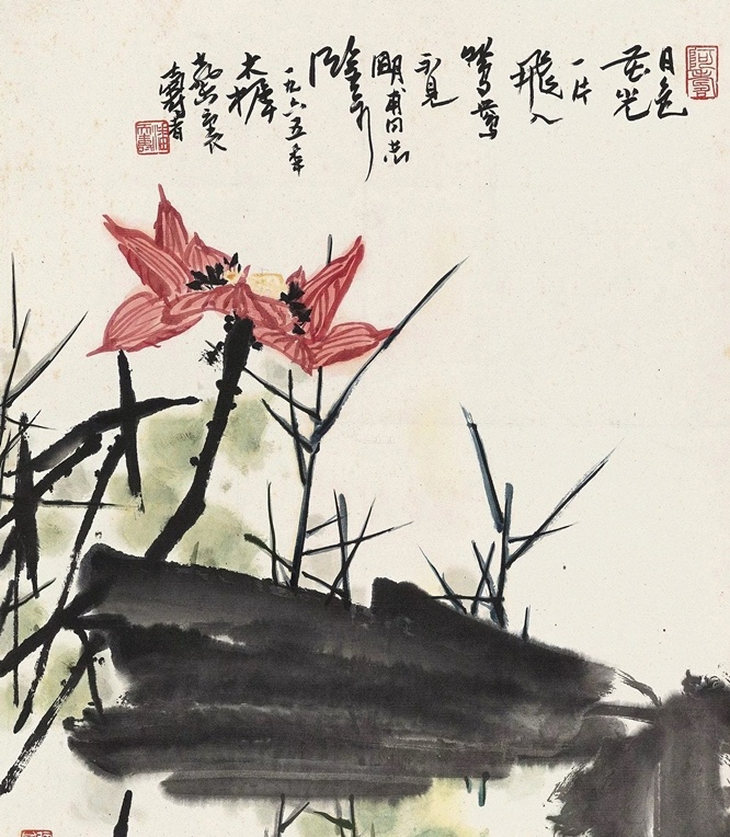 红荷 立轴 设色纸本, 拍卖成交价格估计:RMB 2,000,000-3,000,000,最终成交价格:RMB 4,025,000, 拍卖专场:北京荣宝拍卖有限公司 2018春季艺术品拍卖会, 拍卖成交时间:2018-06-14, 尺寸:66×55cm。