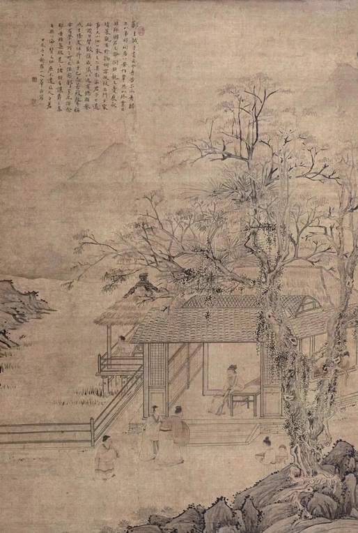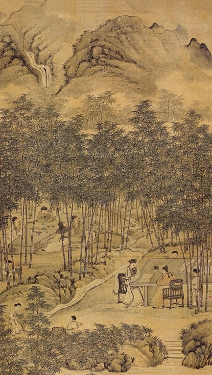 竹溪六逸图 立轴 设色绢本, 拍卖成交价格估计:RMB 3,500,000-4,500,000,最终成交价格:RMB 4,830,000, 拍卖专场:上海明轩国际艺术品拍卖有限公司 2015年春季拍卖会, 拍卖成交时间:2015-06-21, 尺寸:183.5×100.5cm。