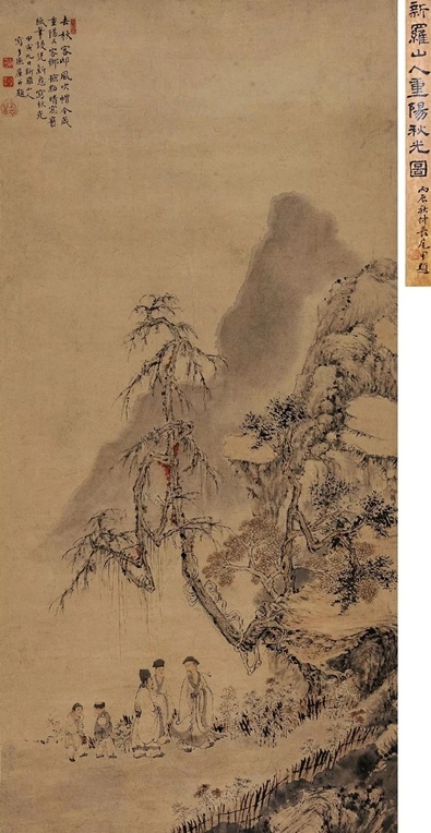 重阳秋光图 立轴 设色纸本, 拍卖成交价格估计:RMB 2,800,000-3,800,000,最终成交价格:RMB 5,060,000, 拍卖专场:北京保利国际拍卖有限公司 北京保利2015春季拍卖会, 拍卖成交时间:2015-06-05, 尺寸:121×55cm。