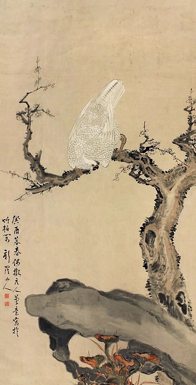 梅鹰图 镜心 设色纸本, 拍卖成交价格估计:RMB 2,000,000-3,000,000,最终成交价格:RMB 2,200,000, 拍卖专场:北京德隆宝国际拍卖有限公司 2008春季艺术品拍卖会, 拍卖成交时间:2008-05-04, 尺寸:249×120cm。