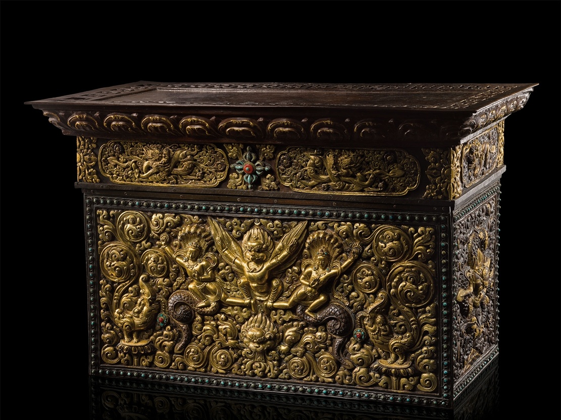 2:17-18世纪铜鎏金嵌宝石供案,尺寸:44.8×70.3×37.6厘米,估价:RMB 100,000 ~ 200,000,成交价: RMB 1,610,000 ,成交时间: 2021-11-29 ,拍卖公司:中国嘉德国际拍卖有限公司,拍卖专场:中国嘉德2021秋季拍卖会。