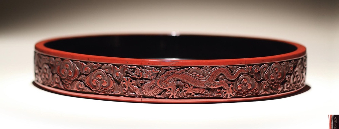 4:明永乐剔红云龙纹托盘,尺寸:直径32厘米,估价:RMB 1,500,000 ~ 2,500,000,成交价: RMB 1,725,000 ,成交时间: 2012-06-05 ,拍卖公司:北京保利国际拍卖有限公司,拍卖专场:2012春季拍卖会。