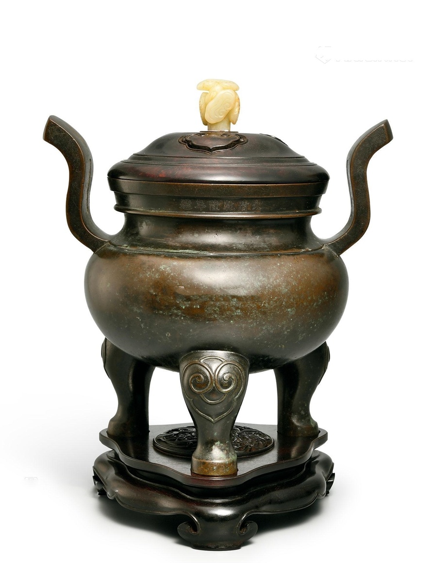 5:清乾隆如意朝冠耳炉,尺寸:口径17.4厘米;高25.8厘米,估价:RMB 1,200,000 ~ 1,500,000,成交价: RMB 1,610,000 ,成交时间: 2021-07-07 ,拍卖公司:中贸圣佳国际拍卖有限公司,拍卖专场:2021上海首届文物艺术品拍卖会。