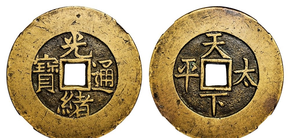 1:清代光绪通宝背天下太平宫钱大字版 GBCA 古-美品 88,估价: RMB 50000,成交价格: RMB 184000,拍卖公司:杭州宜和,拍卖专场:杭州宜和2021年春拍-纸钞古钱,成交时间: 2021-04-24 18:00:00。