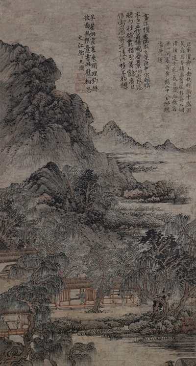 松壑书屋图 立轴 纸本, 拍卖成交价格估计:RMB 5,000-8,000,最终成交价格:RMB436,800元, 拍卖专场:中国嘉德国际拍卖有限公司 嘉德四季第二十期拍卖会, 拍卖成交时间:2009-12-20, 尺寸:121×61cm。