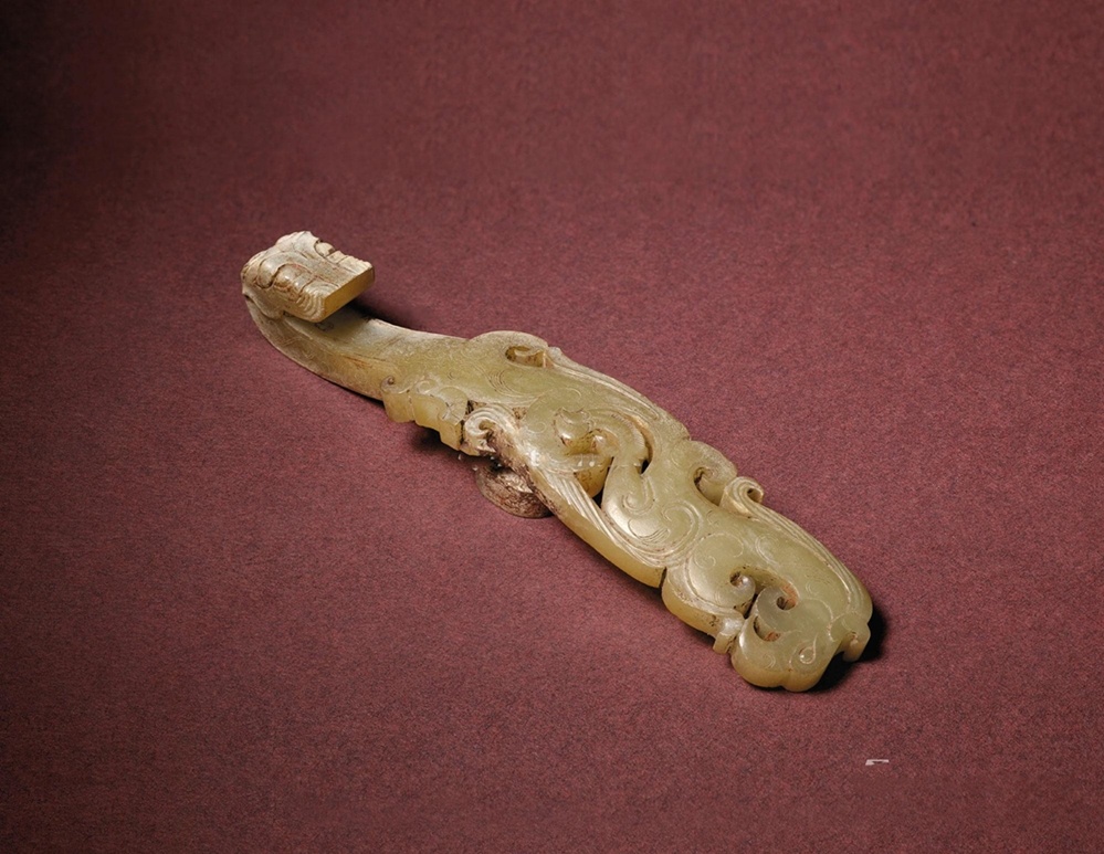 3:战国晚期至西汉早期龙首凤纹玉带钩,尺寸:11厘米,long,box,估价:HKD 2,500,000 ~ 4,000,000,成交价: HKD 3,125,000 ,成交时间: 2021-12-03 ,拍卖公司:佳士得香港有限公司,拍卖专场:2021年秋季拍卖会。