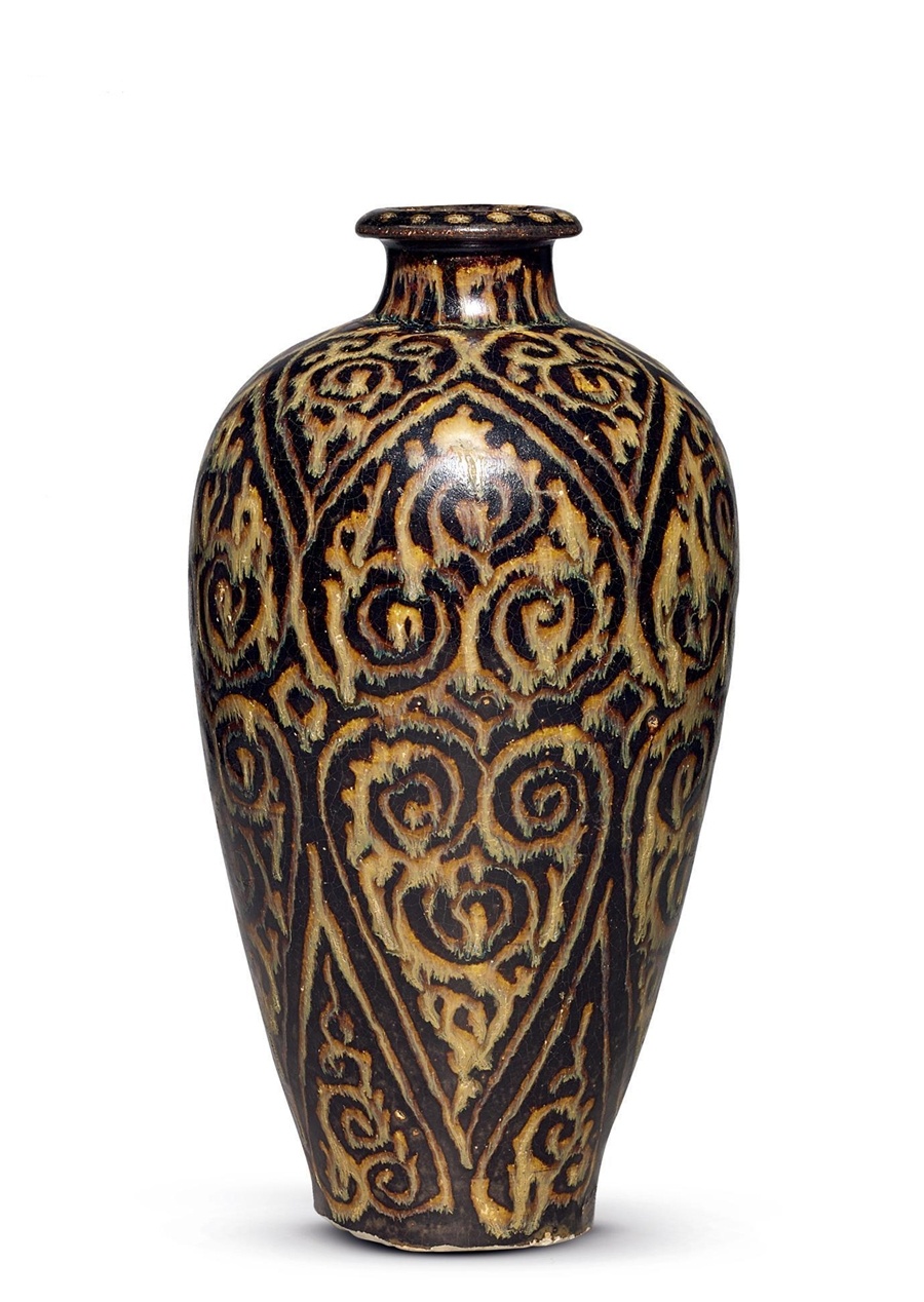 2:南宋/元吉州窑仿剔犀如意云纹梅瓶,尺寸:高22.2厘米,估价:HKD 1,000,000 ~ 1,500,000,成交价: HKD 2,920,000 ,成交时间: 2015-12-02 ,拍卖公司:佳士得香港有限公司,拍卖专场:2015年秋季拍卖会。