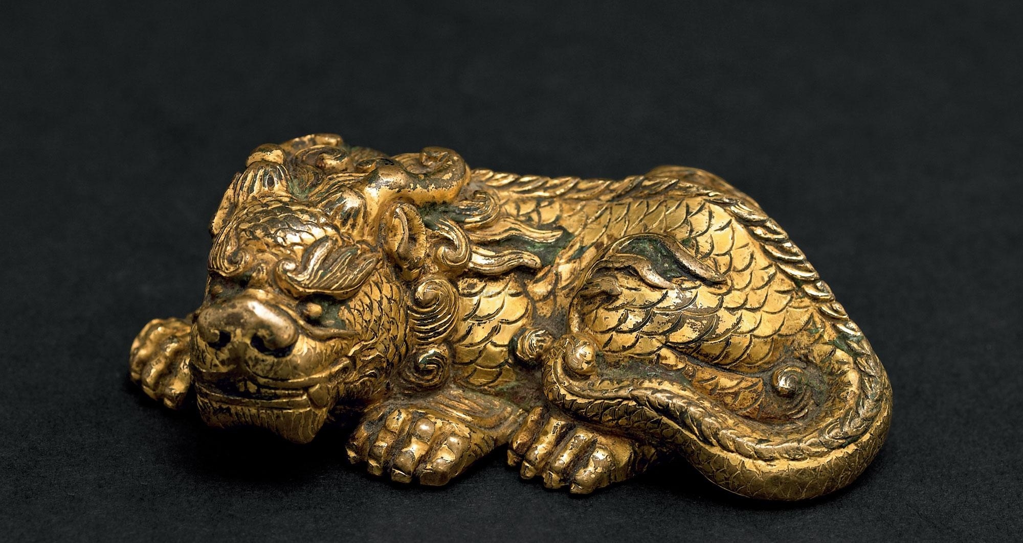 3:明早期铜鎏金麒麟镇纸,尺寸:长8.2厘米,估价:RMB 200,000 ~ 250,000,成交价: RMB 575,000 ,成交时间: 2012-06-04 ,拍卖公司:北京匡时国际拍卖有限公司,拍卖专场:2012年春季艺术品拍卖会。