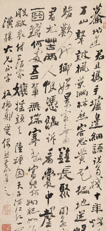 怀潍县二首 立轴 水墨纸本, 拍卖成交价格估计:HKD 1,500,000-2,000,000,最终成交价格:RMB5,899,520元, 拍卖专场:香港蘇富比拍卖有限公司 2016年5月拍卖会, 拍卖成交时间:2016-05-30, 尺寸:188.5×108.8cm。