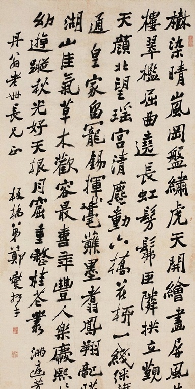 1758年作 行书中堂 立轴 纸本, 拍卖成交价格估计:RMB 2,200,000-3,600,000,最终成交价格:RMB3,392,500元, 拍卖专场:北京观唐皕榷国际拍卖有限公司 2017迎春艺术品拍卖会, 拍卖成交时间:2017-01-11, 尺寸:177.4×93.5cm。