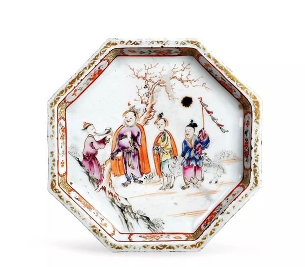 而从瓷器本身的烧造技艺上来说,广彩瓷器的烧造工序繁杂,且采用中国传统技法与西洋技法相结合的方式,不仅难度高,且对于工匠技艺的要求也更高。在后期还衍生出了一种新方式,即在白瓷胎上直接进行彩绘再烧制,这种方式也被广泛应用于外销瓷器中,特别是当时广东的商人,常常带着景德镇所出的上好白瓷胎来到广州,再根据外国人的意愿进行彩绘,不仅颇富异域风情,且出口品多,是较好的收藏品。