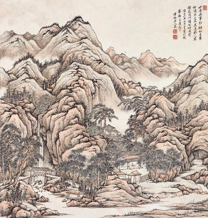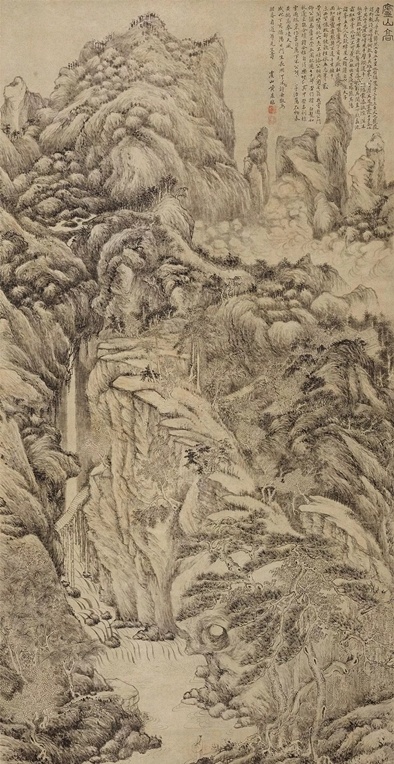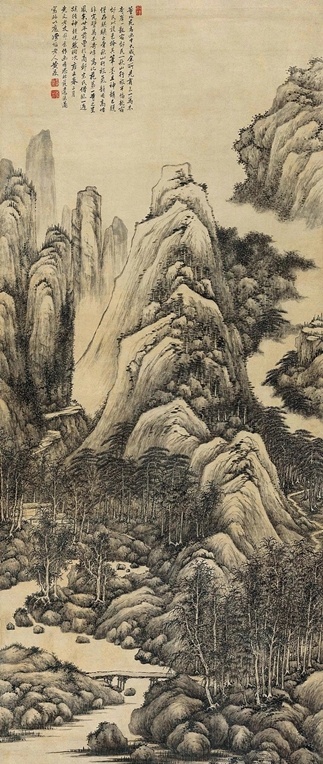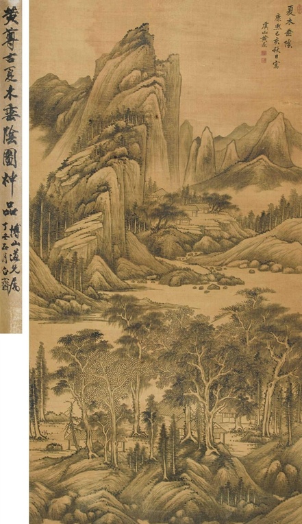 仿大痴山水 立轴 设色绢本, 拍卖成交价格估计:RMB 180,000-380,000,最终成交价格:RMB 672,000, 拍卖专场:中贸圣佳国际拍卖有限公司 2007年秋季艺术品拍卖会, 拍卖成交时间:2007-12-02, 尺寸:169.5×89cm。