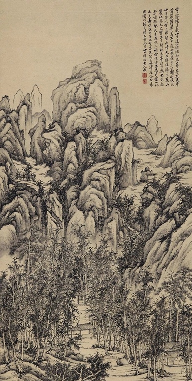 天平山图 立轴 水墨纸本, 拍卖成交价格估计:RMB 1,500,000-1,800,000,最终成交价格:RMB 5,520,000, 拍卖专场:中国嘉德国际拍卖有限公司 中国嘉德2013年秋季拍卖会, 拍卖成交时间:2013-11-19, 尺寸:127×61.5cm。