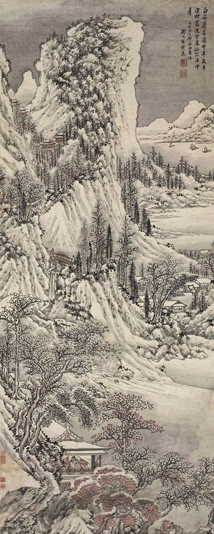 苍苔积雪 立轴 设色纸本, 拍卖成交价格估计:RMB 1,200,000-1,800,000,最终成交价格:RMB 3,320,000, 拍卖专场:上海宝龙拍卖有限公司 首届大型中国书画拍卖会, 拍卖成交时间:2011-12-22, 尺寸:181×69cm。