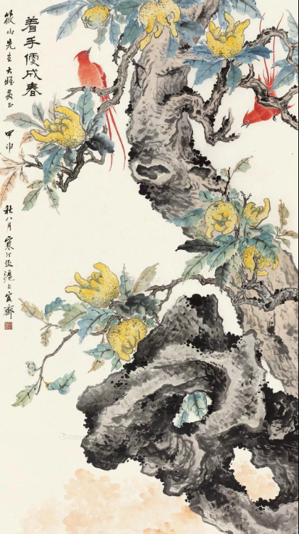图4:江寒汀1944年作 着手便成春 立轴 纸本;成交价:RMB 1,495,000;尺寸:145×78厘米;拍卖公司:上海匡时拍卖有限公司;成交时间:2017-11-05。