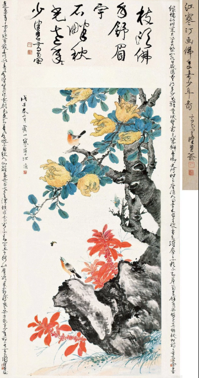 图2:江寒汀花鸟图;成交价:RMB 1,739,808;尺寸:98.7×51.6厘米;拍卖公司:香港荣盛国际拍卖有限公司;成交时间:2016-07-16。