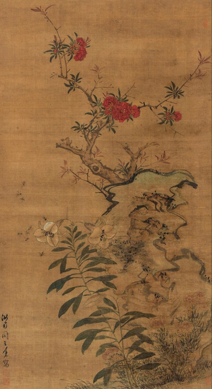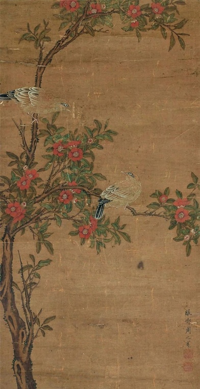花鸟 立轴 设色绢本, 拍卖成交价格估计:HKD 220,000-280,000,最终成交价格:RMB 372,485, 拍卖专场:中国嘉德国际拍卖有限公司 中国嘉德香港2014年春季拍卖会, 拍卖成交时间:2014-04-08, 尺寸:124×61cm。