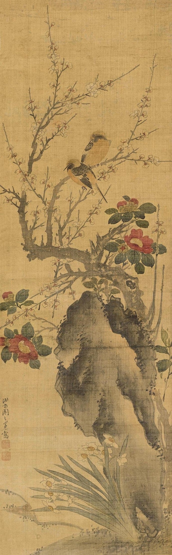 花鸟图, 拍卖成交价格估计:RMB 2,800,000-2,800,000,最终成交价格:RMB 3,300,000, 拍卖专场:汉斯德拍卖有限公司(新加坡) 2018东方艺术慈善晚宴拍, 拍卖成交时间:2018-10-22, 尺寸:84×41cm。