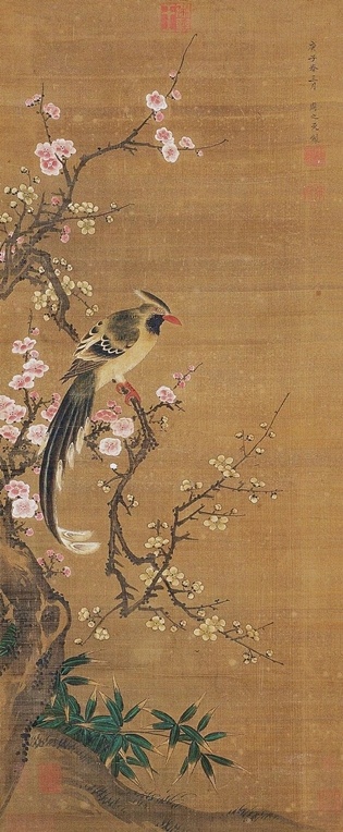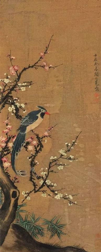 梅花绶带 立轴 设色绢本 , 拍卖成交价格估计:RMB 280,000-380,000,最终成交价格:RMB 358,400, 拍卖专场:北京海士德国际拍卖有限公司 2011春季艺术品拍卖会, 拍卖成交时间:2011-06-16, 尺寸:115×45cm。