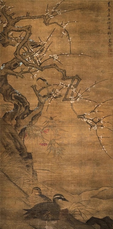 梅花双禽 立轴 设色绢本, 拍卖成交价格估计:RMB 1,200,000-1,800,000,最终成交价格:RMB 1,495,000, 拍卖专场:广州华艺国际拍卖有限公司 2018春季拍卖会, 拍卖成交时间:, 尺寸:126×59cm。