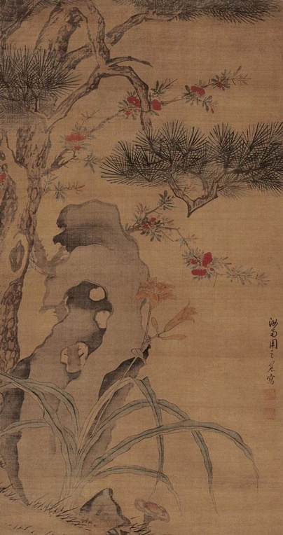 五瑞祝寿图 立轴 设色绢本, 拍卖成交价格估计:RMB 150,000-200,000,最终成交价格:RMB 660,000, 拍卖专场:中国嘉德国际拍卖有限公司 中国嘉德2005秋季拍卖会, 拍卖成交时间:2005-11-07, 尺寸:111.2×56.2cm。